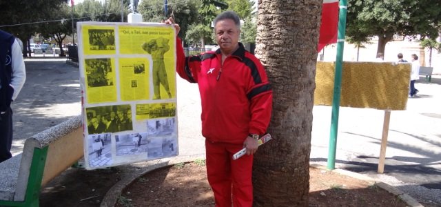 Così scrive Matteo Fiorente su un cartello in mostra in piazza Aldo Moro nella mattinata del 25 aprile, durante un’esposizione di una parte della sua ricca collezione di ritagli di giornali e foto del periodo nazista e della resistenza. “Questo sarà l’ultimo anno che espongo questi ricordi” – aggiunge Matteo Fiorente, sottolineando il riferimento alla commemorazione di Antonio Gramsci che presenta nella giornata del 27 aprile.